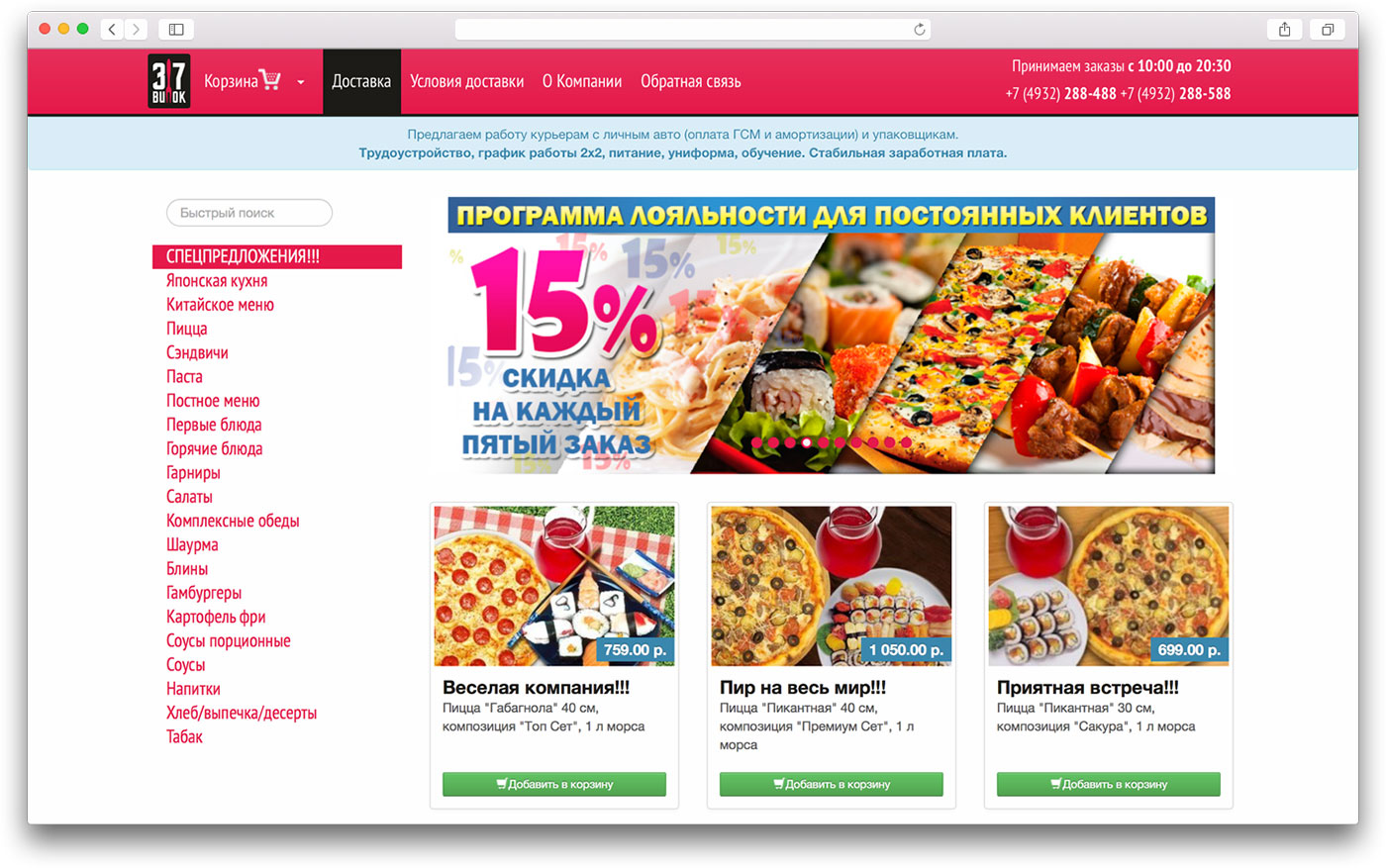 37 Forks is food delivery service, which provides pasta, pizza, fast food, launches, soups, beverages. The company has own manufacture and couriers. The system automates all sides of business: Web site for clients; Dispatching interface to handle orders and put them to manufacturing; Backend accounting tools and reporting.