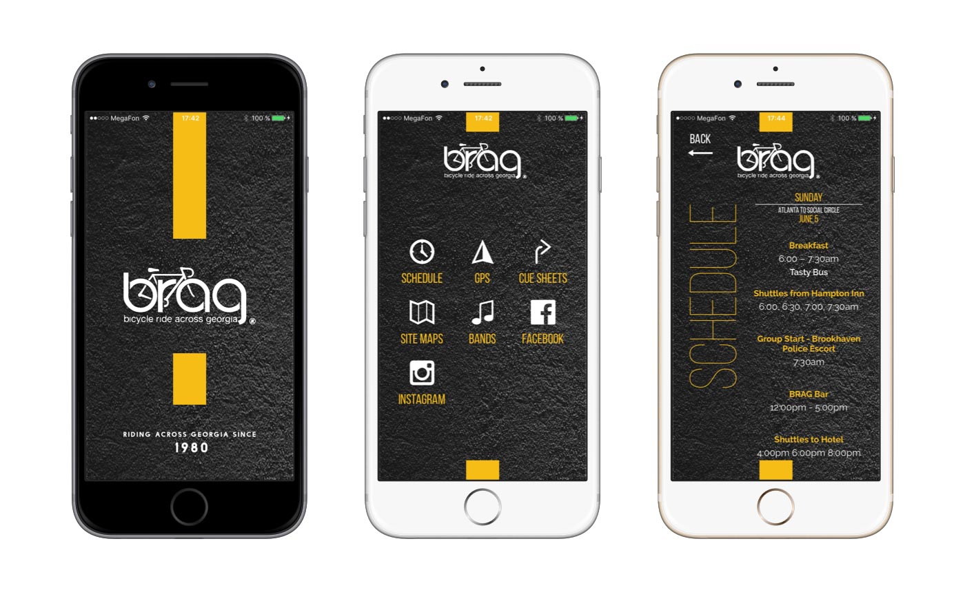 The Bicycle Ride Across Georgia App is a resource for participants of BRAG rides. Riders come from all over the U.S. and benefit from having timely and relevant information on their smartphones in support of their bike ride. This free BRAG App provides a schedule of events, route maps (Cue Sheets & GPS links), host town maps, social media feeds, BRAG chat board, FAQ's, and all other sorts of useful information. For more details you can also visit us on the web at www.brag.org.