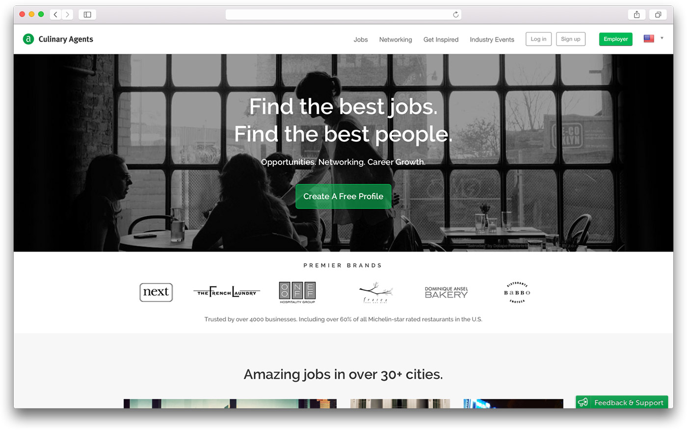 Social business network for the food & beverage industry. This community is key to the success of our job matching database, so we are 100% committed to making Culinary Agents a daily destination for industry talent, with rich resources to engage, educate assist and entertain beyond the job hunt.