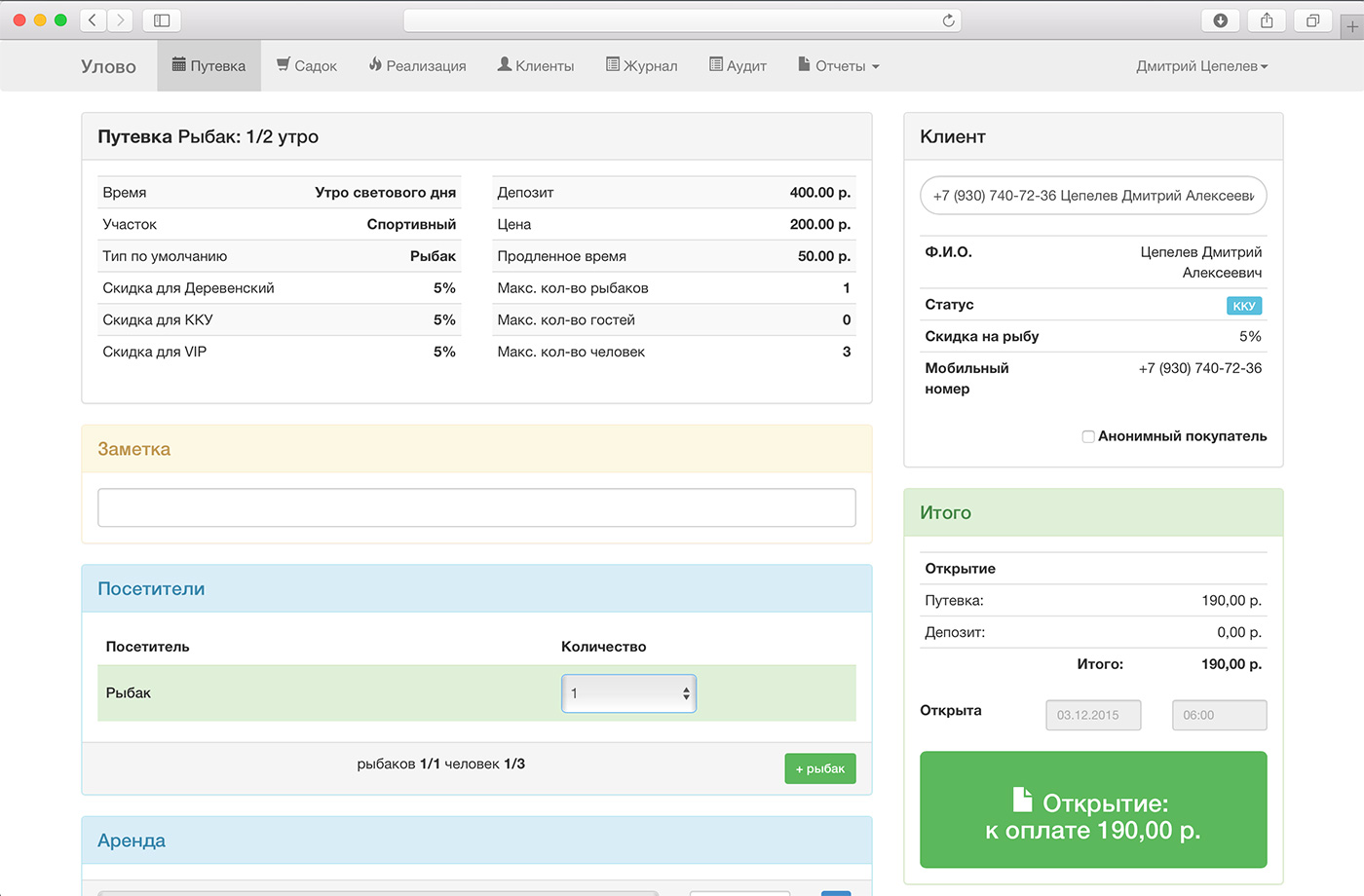 Program system for the accounting of activity of the enterprise which is engaged in sale of fishing permits.
