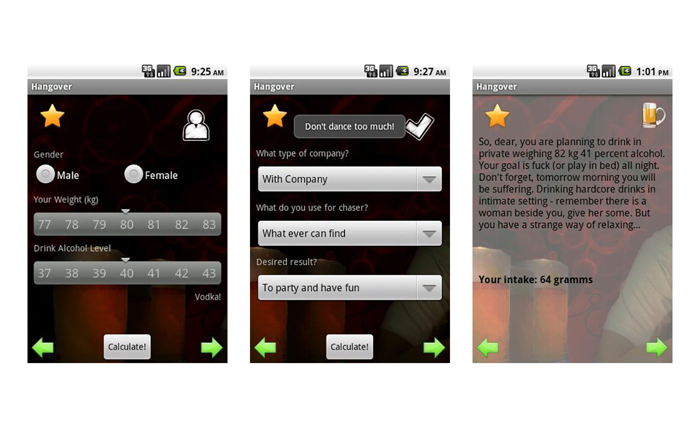 Приложение-шутка для подсчета количества алкоголя принятого накануне. "Бодун" поможет вам узнать свою норму, чтобы избежать его.