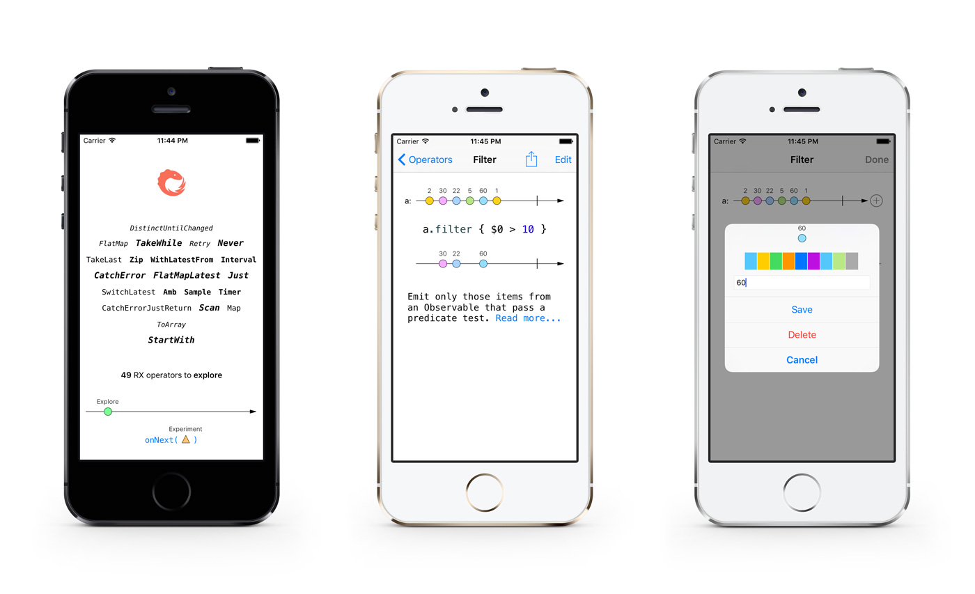 RxMarbles — это интерактивный справочник по методам ReactiveX (Reactive Extensions, www.reactivex.io). ReactiveX — это библиотека для создания асинхронных и основанных на событии программ при помощи наблюдаемой последовательности. Проект доступен в виде открытого исходного кода: https://github.com/RxSwiftCommunity/RxMarbles